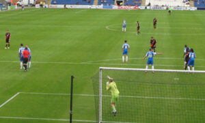 The Blades were looking more confident and the man of the moment doubled his tally shortly after. McMahon’s delivery from the right was cleared, but only as far as Flynn on the left hand side, who got the ball under control and curled a beautiful finish past the outstretched Jalal into the bottom corner.