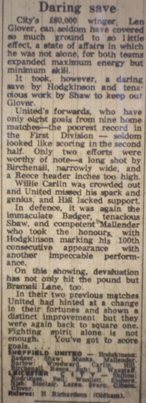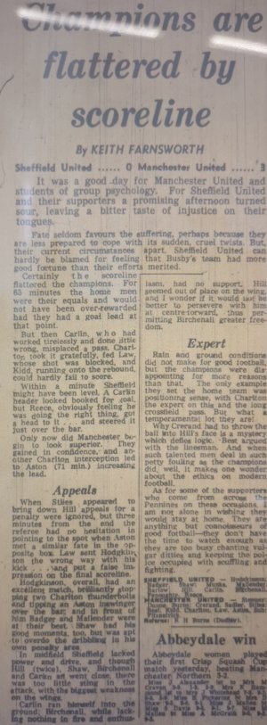 There is a chapter in Alan Hodgkinson's autobiography devoted to how George Best scored a wonderful goal against him in this match. The problem is that George Best didnt score in this match! Strange!