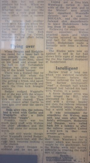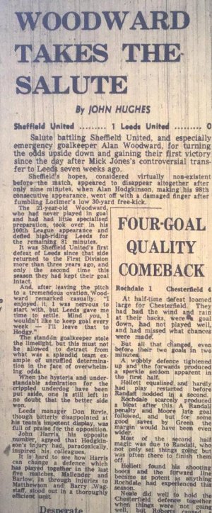 I remember my dad telling me about this match and how well Woody played in the net also Mick Hill scored a lovely header. Blades fans were singing to the Leeds fans "You have signed the wrong Mick"