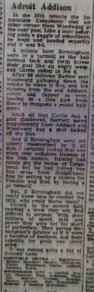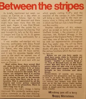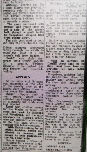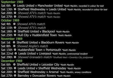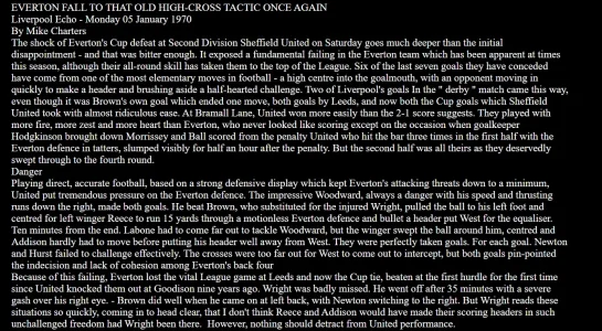 I was at my maternal grandmother's house in Hartley Brook Road and reading in the papers that we had won 1-0 at Carlisle. I learned that Wendy's home game against Coventry had got postponed due to the snow and frost. Looking at the TV guide in the same paper it stated that the YTV Soccer programme would be showing highlights of Wendy v Coventry and I was wondering if the camera would be filming the snow at Hillsborough for many minutes despite that there would be no spectators at the ground. My twin uncles would always watch the soccer programme on YTV every Sunday. I asked them to put the tv on to watch the programme but my Uncle David said "Not going to switch the tv on as it would be a waste of money because Wendy's match got postponed yesterday!" Not sure if my Uncle David knew that the Soccer programme would be showing highlights of a match from a different region! Granada's match was Liverpool v Arsenal.