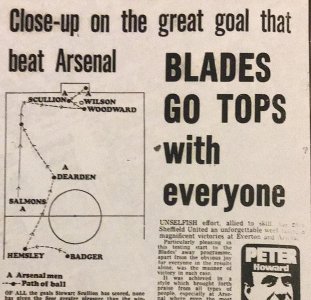 I know I have already seen us beat Leeds the season before but I thought Leeds would be much tougher to beat in the first division fixture (it did seem we didnt really dominate like the last time). I was on a high and was in the BLUT front row talking loudly to my dad about my disbelief, then my dad told me to turn round and look at Gary Sprake. I turned round and was surprised he was looking straight at me not looking amused and probably didnt like the tone of my excitement. Tom Fenoughty and the fans near our seats noticed this too and they all burst out laughing at Sprake. There was a lovely sight of red and white scarves being held aloft all over the Kop and the Blades fans all around the ground sang in unison.