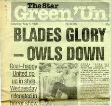 Like this? No headline will ever beat this. Still got my copy after coming back from Leicester and picking one up on that most glorious of day's. What a wonderful day and still my best after 60 years being a Blade.I always fancied having Blades Glory - Owls Down framed on my wall